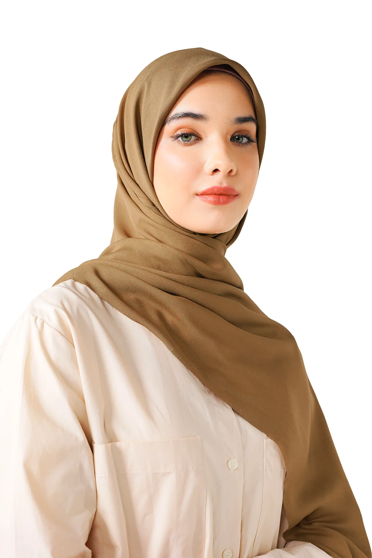 This effortless shawl is crafted from a lightweight and soft material, ensuring comfort throughout the day. The headpiece can be folded to discreetly cover your hair, ensuring a neat and stylish appearance at all times. Available in 12 colors.