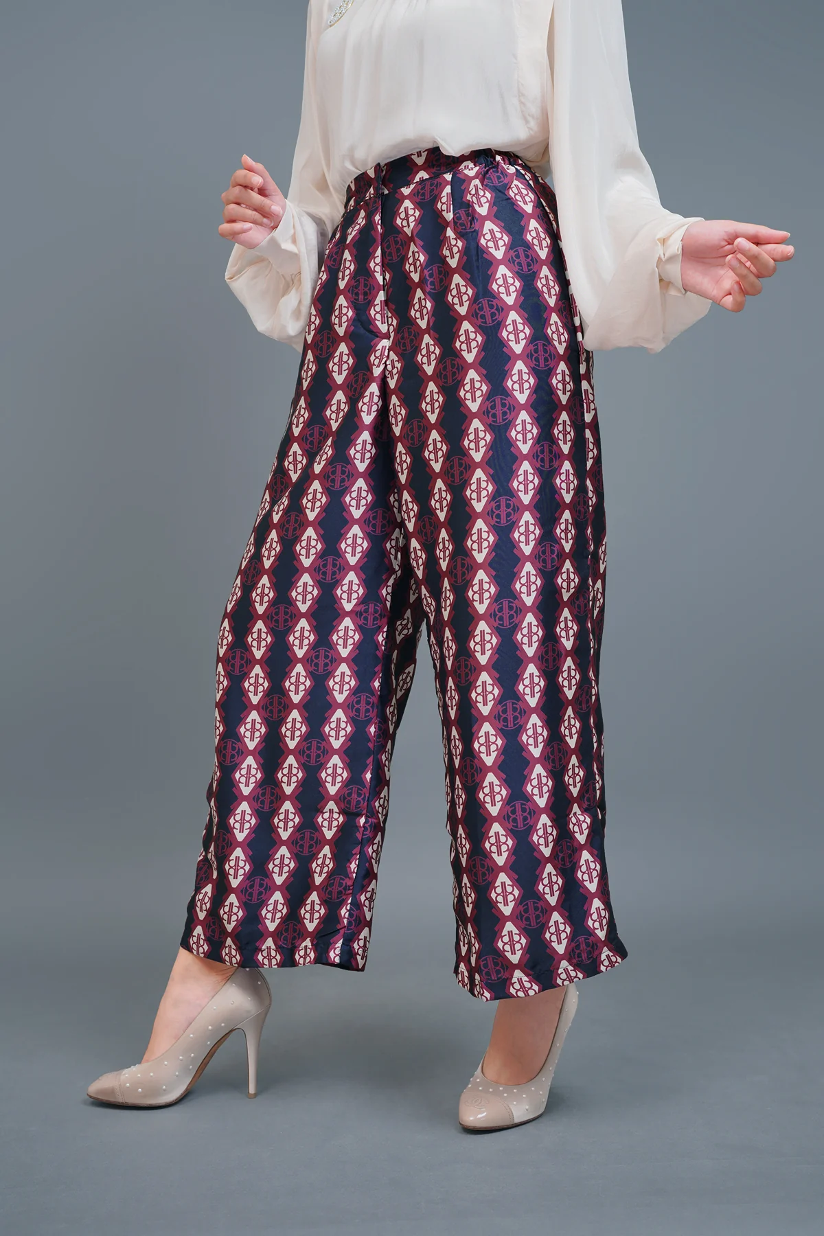Refresh your collection of daily separates with this pair of pants, rendered in a classic Nada Puspita monogram. Crafted into a wide leg silhouette, this piece promises immense comfort at any time.