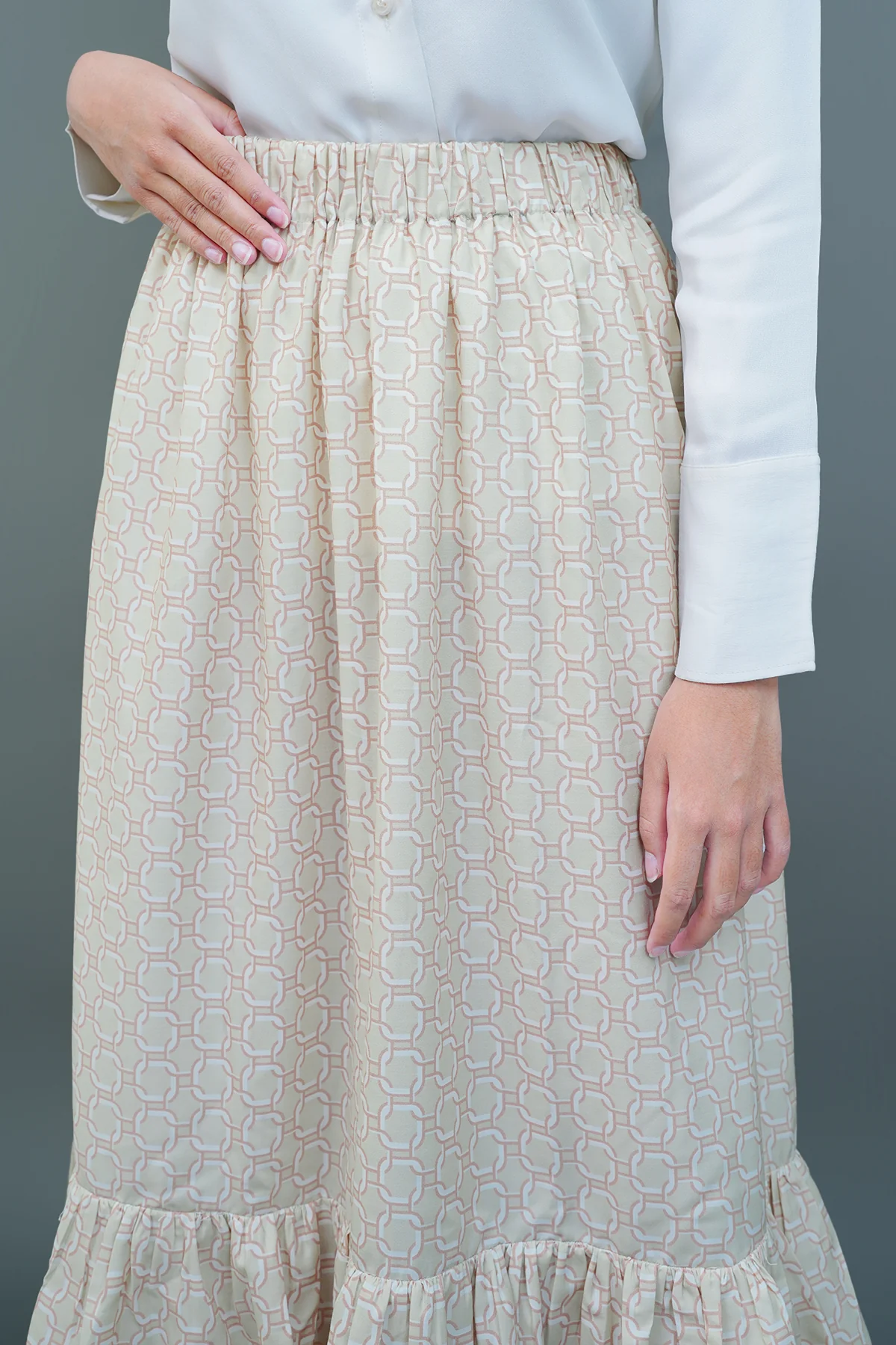Winning you over with its vintage sensibility, this skirt is casted in a ruffle design and geometric pattern. Completed with an elastic waistband, this piece promises ultimate comfort and elevates your looks with an edge.