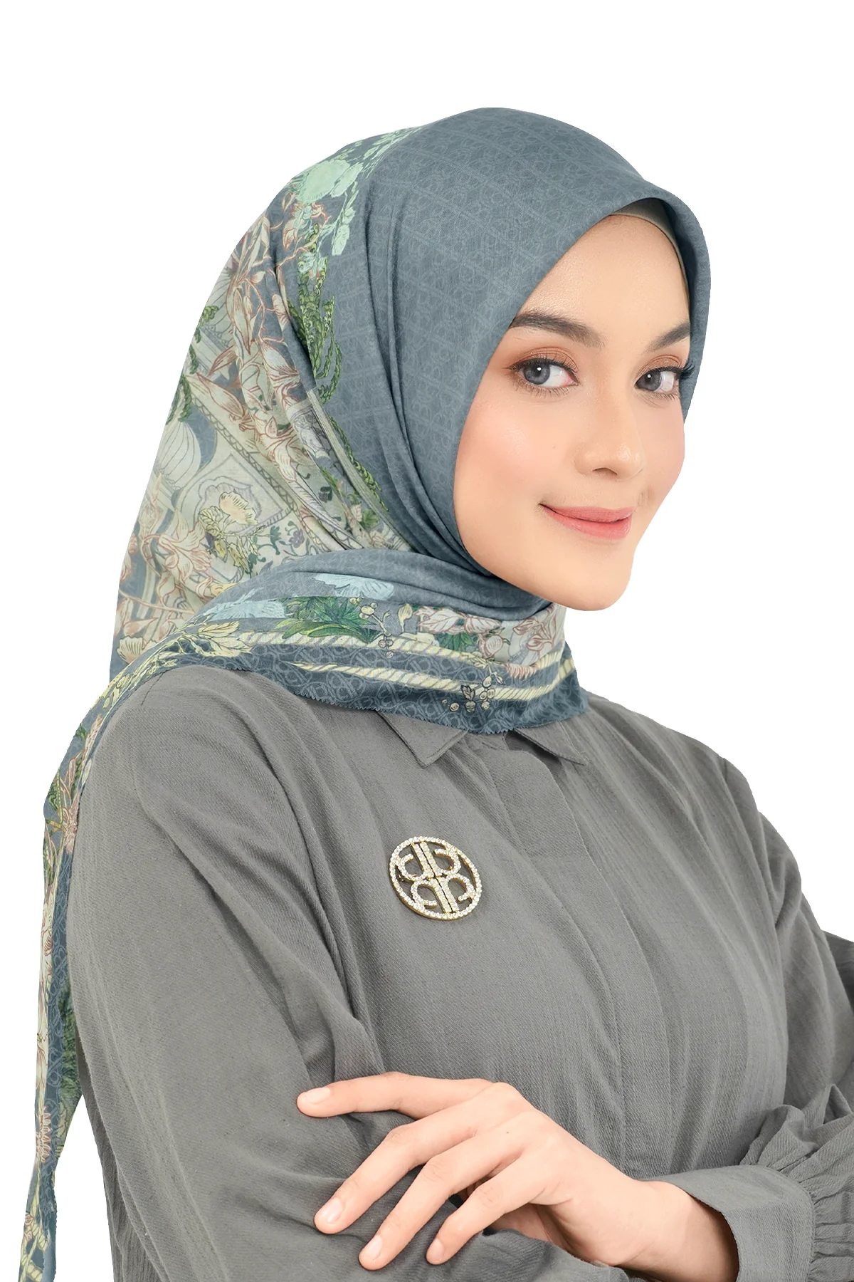 Exuding grandeur and majesty, this collection features two graceful, distinctive patterns. One side showcases elegant floral motifs, while the other boasts a captivating castle pattern inspired by Islamic architecture. Completed with two Nada Puspita gold charms, this series captures the essence of regality. Available in 13 alluring colors.