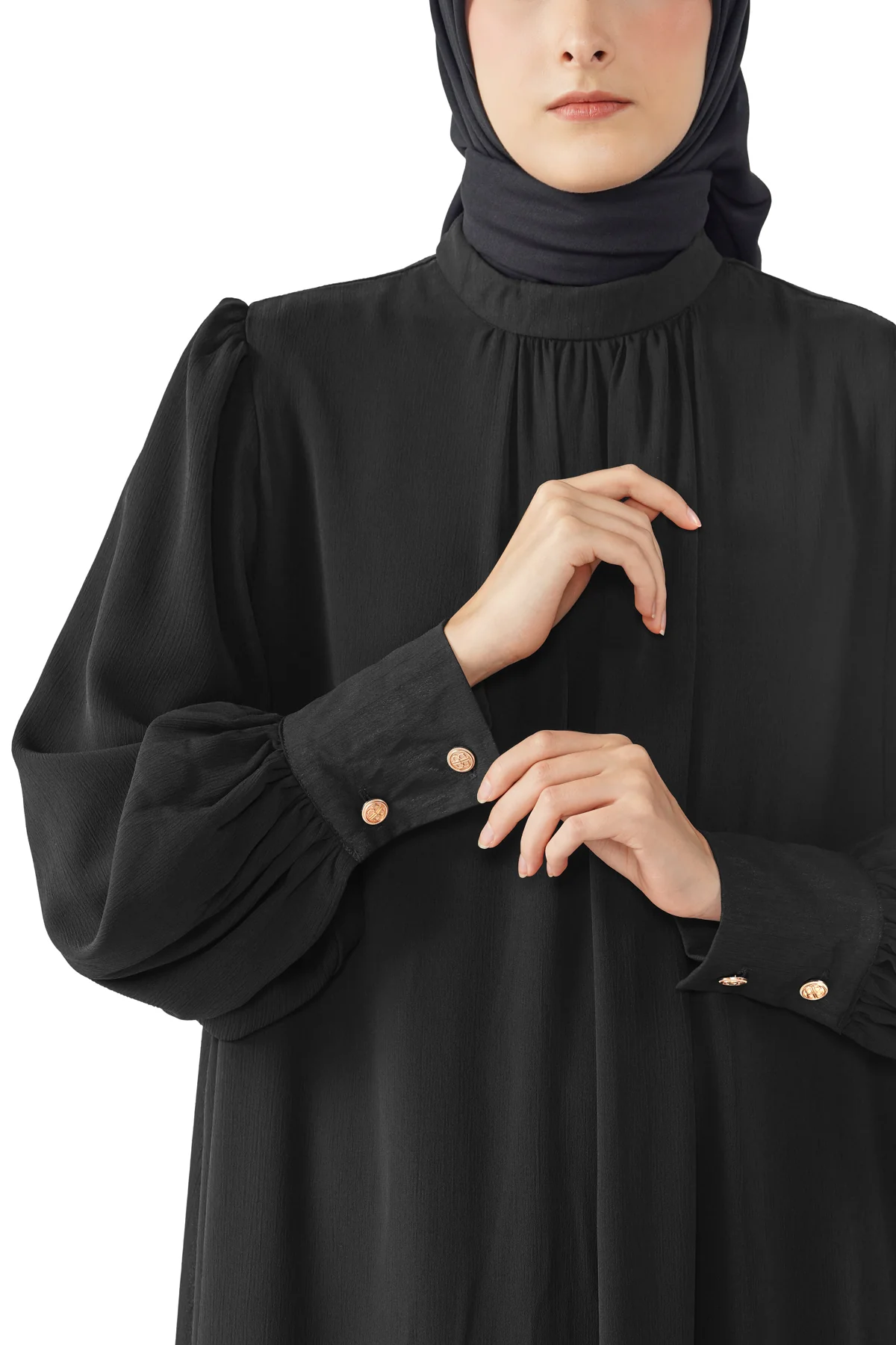 With tiered ruffles and dramatic puffy sleeves, this dress flatters in all the right ways. It is also made from wrinkle-resistant fabric, ensuring elegance and comfort at all times.